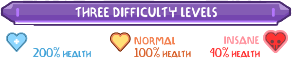 - Difficulty level is set per-player - one player can be on Friendly and one player on Insane, no problem!