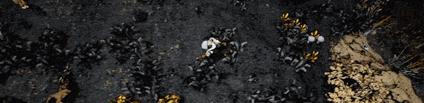 As an alchemist you wear no armor and wield no sword, but you rain down fire on your enemies. Find flasks with unique properties in the wilderness or craft them at your workbench. In deck-building fashion you create a compilation of flasks which you randomly draw from.