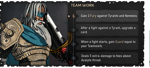 Each time you dive into the depths, you choose a second hero to accompany you. As a companion, each hero brings eight unique powers. With dozens of possible duos you can develop your own playstyle or try improbable duos.Do you need an expert against boss fights or a proto-blacksmith that enhances your card upgrades?