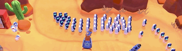 Large swarms of enemies that navigate dynamically – can be pushed, shoved and bashed around by players and turrets.