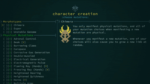 - Assemble your character from over 70 mutations and defects and 24 castes and kits—outfit yourself with wings, two heads, quills, four arms, flaming hands, or the power to clone yourself—it's all the character diversity you could want.