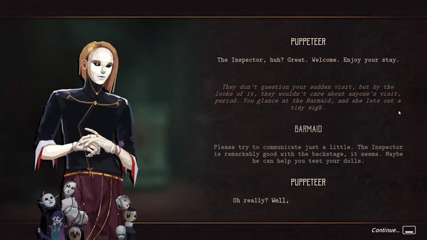 - Puppet crafting: three basic playable archetypes of a "knight", a "rogue" and a "mage" can be customized further with the doll parts you discover in the process of conquering the backstage. Dismantle the bosses to upgrade your own puppets!