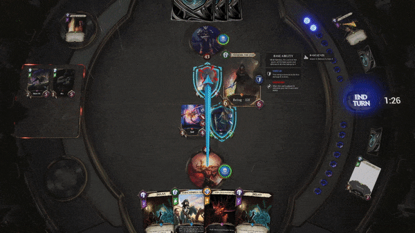 Sharedboard is a two sided sword, it brings consistency but it also brings chaos. When building a deck each player appoints 3 cards to the shared board. 4 of the 6 cards(2 are banned) will then be put into the Sharedboard and revealed to both players. Both players can play the cards at any time during the game if they have the resources. This means you can play the cards your opponent places in the Sharedboard and they can play the ones you did. Choose carefully on what you are willing to give!