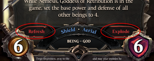 Transcendent abilities: These are card abilities that can appear on any card of Legendary or Transcendent rarity; either being, aura or spell. They are marked with red colour on the cards. They are extremely powerful, such as “Refresh” that enables your hero ability(can only be used once per game otherwise) to be used again.