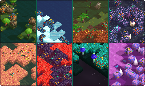 Discover procedurally generated maps with unique biomes (arid, volcanic, frost, ...) and shapes (dense, archipelago, river, ...). Enjoy a beautiful 3D pixel art style with dynamic lighting. Find useful structures like treasures or shrines.