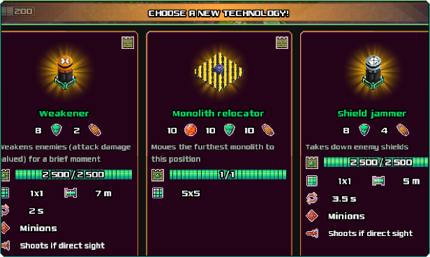Place buildings to protect your base and attack enemy monoliths. Combine and synergize buildings from four different categories: offensive, status effects, support and biome specials.