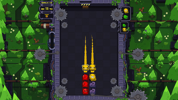 Puzzle your way through familiar Super Meat Boy and Super Meat Boy Forever locations like the picturesque forest, the hospital, and salt factory in a fresh Puyo Puyo-inspired format. However, in Dr. Fetus’ Mean Meat Machine, matching at least 4 clones of the same kind and creating awesome combos isn't enough – you'll also have to avoid lethal hazards and traps, such as sawblades, rockets and pendulums. It’s a demented and hardcore spin on the classic puzzle formula you know and love!