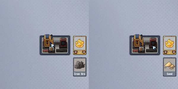พอเราได้ทรัพยากรมาแล้ว สามารถเอาไปคราฟโต๊ะคราฟต่างๆ ได้ผ่าน UI ของฐานหลัก แต่ละโต๊ะก็จะสามารถลากทรัพยากรเข้าไปคราฟของได้ เหมือน Minecraft นั่นแหละครับ