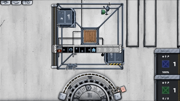 Grab the timeline handle and crank time backwards to see the state of the factory in the past. Replay past steps and spot where a solution has a bug or could be made more efficient.