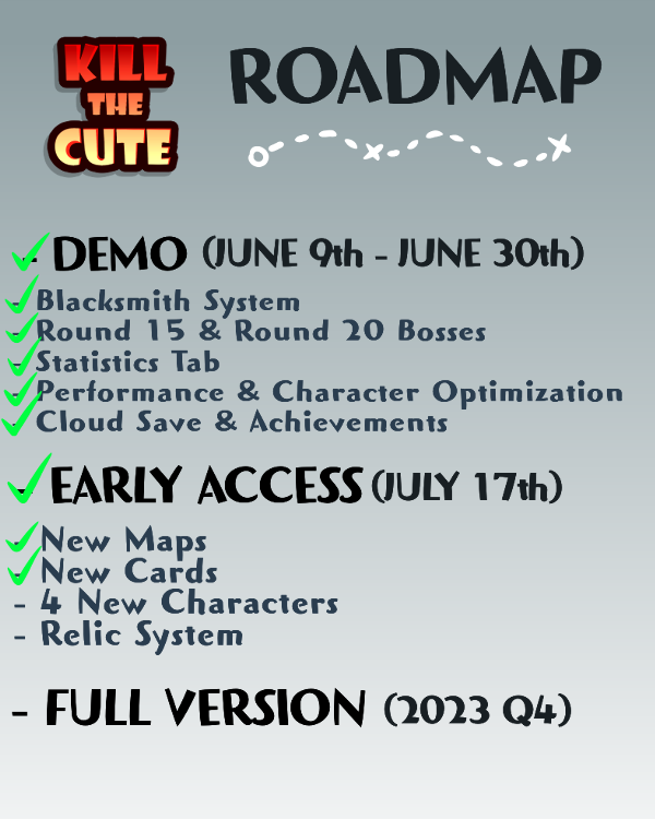 Death is not the end! Upgrade the weapons of your favorite characters and spend the skill points on your Skill Tree as you like. Come back stronger and Kill The Cute again and again!
