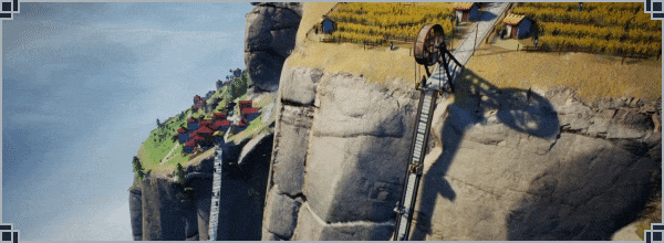 So, transporting goods is easy, right? Well, not if your destination lies on the other side of the mountain, a few hundred meters higher, behind cliffs, ridges, canyons and rivers. You will need to create a vast, complex transport network consisting of roads, bridges and shafts to ensure reliable delivery chains. As demand for resources will grow alongside the town’s population, always look for opportunities to optimise your transportation network, be it by building paved roads, using more advanced lifting constructions, or aiding your carriers with glamorous yaks.