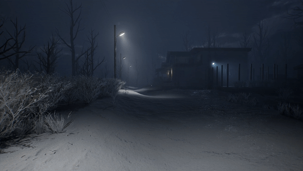 ณ เวลาดึกดื่น เราเล่นเป็นคนหนึ่งที่ขับรถกลับมายังบ้านกลางป่าที่อากาศหนาวจัดจนหิมะตกและบ่อน้ำกลายเป็นน้ำแข็ง เราไม่สามารถเข้าบ้านได้ พอมองผ่านกระจกก็เห็นคนแขวนคอ และโดน Jumpscare จุดแรก ที่ดึงคุณเข้าสู่เกมได้อย่างอยู่หมัด