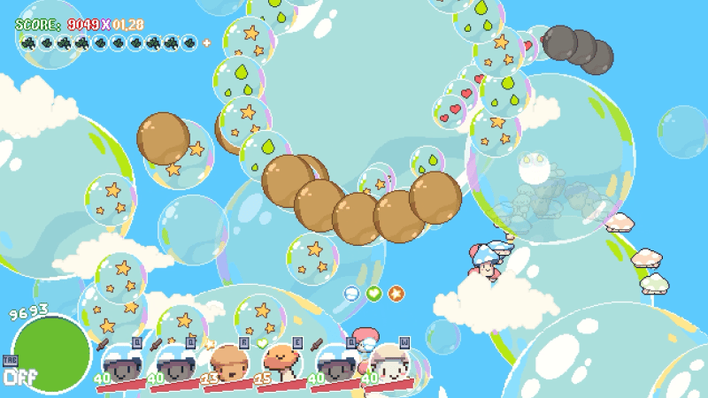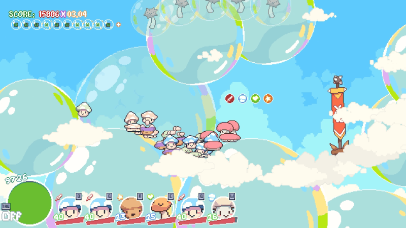Ninety-nine years ago, mushrooms took to the skies, their spores landing on magical, floating islands and blossoming into a happy, joyous civilization. Unfortunately, every ten years a giant storm passes through the Shroomy Isles and reduces everything to little more than mycelium and a couple of berry brushes. As the tenth storm looms upon the Isles, the first little storm cloud puts a big idea in the tiniest shroom's head: Unite the shrooms! Fight back against the weather!!