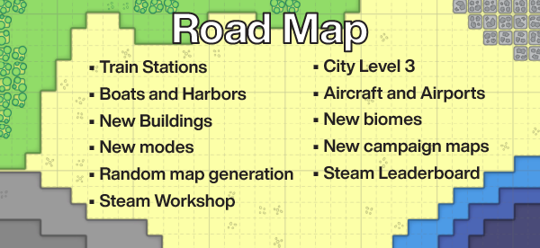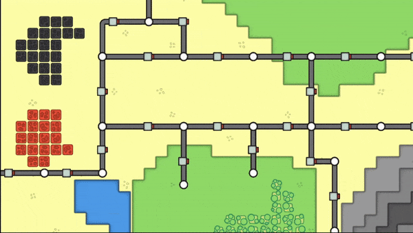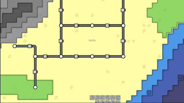 สร้างเมืองโดยการวางสี่เหลี่ยมตามประเภทลงบนแผนที่ จะส่งของไปหากันต้องลากถนน แต่ถนนจะมีความยาวจำกัด พื้นที่ที่วางได้ก็ค่อนข้างจำกัด
