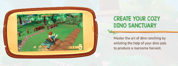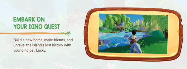 Set out with your dino companion, Lucky, to uncover the island’s secrets and discover new dinos. Your arrival on the island is met with welcome curiosity by the local townsfolk who can help you on your quest (and just might give you more work to do!). Together with Lucky, build a thriving ranch, assist local villagers, befriend adorable dinosaurs, and unearth the island’s lost history to build your cozy dino sanctuary.