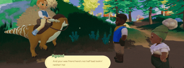 A quirky (but friendly!) array of townsfolk on the island can’t wait to meet you and help you on your quest. Granny might have a stubborn side, but get to know her and she’s an ol’ softie. Building friendships within the community is just as important as building friendships with your dinosaurs. As you ride dinos, farm, and explore, you will come across new characters, each with their own story, items or knowledge to share, and gossip to exchange. Help them out day or night by completing quests, opening up new areas, and visiting the stores and community hubs. And who knows—they may even gift you something to spruce up your ranch!