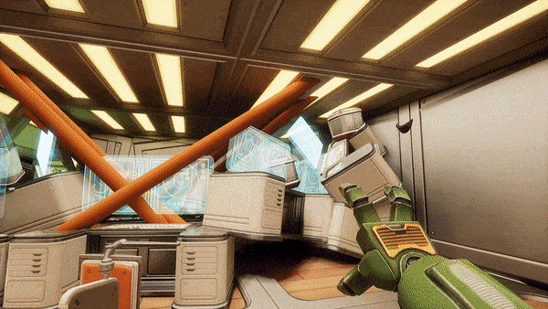 Teleportation is the main means of traversal in the game and it is FUN! You're going to be using your PAWS to jump through the portals you create in order to fulfill your mission. You can teleport almost anywhere, but the blue pools of liquid look pretty dodgy - don't teleport into those, please.