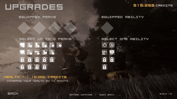 - Loot credits from the machines and buy perks and abilities to evolve your character