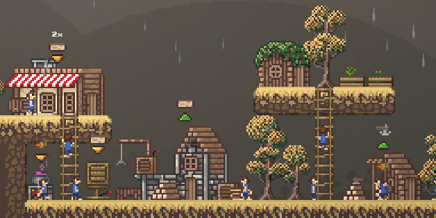 เบื้องต้นเกมจะเป็นแนวสร้างเมืองนี้แหละ แต่เป็น 2 มิติ ที่เราสร้างเองไม่ได้ ต้องวางแพลนไว้ แล้วรอคนที่เดินผ่านมาจะมาสร้างทีละขั้นๆ ที่เอกลักษณ์คือคนทุกคนจะเดินเด้งกำแพงไปมา ผ่านที่ไหนถ้าทำอะไรได้ก็จะทำ เช่น ถ้าไม่ถืออะไร เดินชนกำแพง ก็จะเดินกลับไปอีกทาง ถ้าเดินผ่านฐาน Pickaxe ก็จะหยิบอุปกรณ์มา คราวนี้ถ้าเดินไปชนกำแพง ก็จะขุด แล้วไปถือหินแทน แต่ก็จะไม่หยิบอะไรต่อเพราะมือถือหินอยู่ เป็นต้น