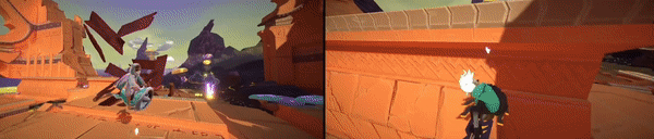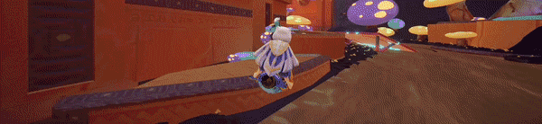 Items in Ultimate Godspeed are level objects like ramps, platforms, holes and other are traps like an ice patch where you lose control, deadly rotating saw blades or oily surfaces which can obscure the players sight. These items allow for different play styles like building the fastest shortcut possible or a chaotic death trap.