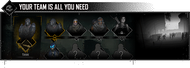 Your squad evolves upon your customized decisions as you play. Pursue a varied set of perks and support skills, or focus on your favorite character to alter their gear and gain their ultimate abilities.